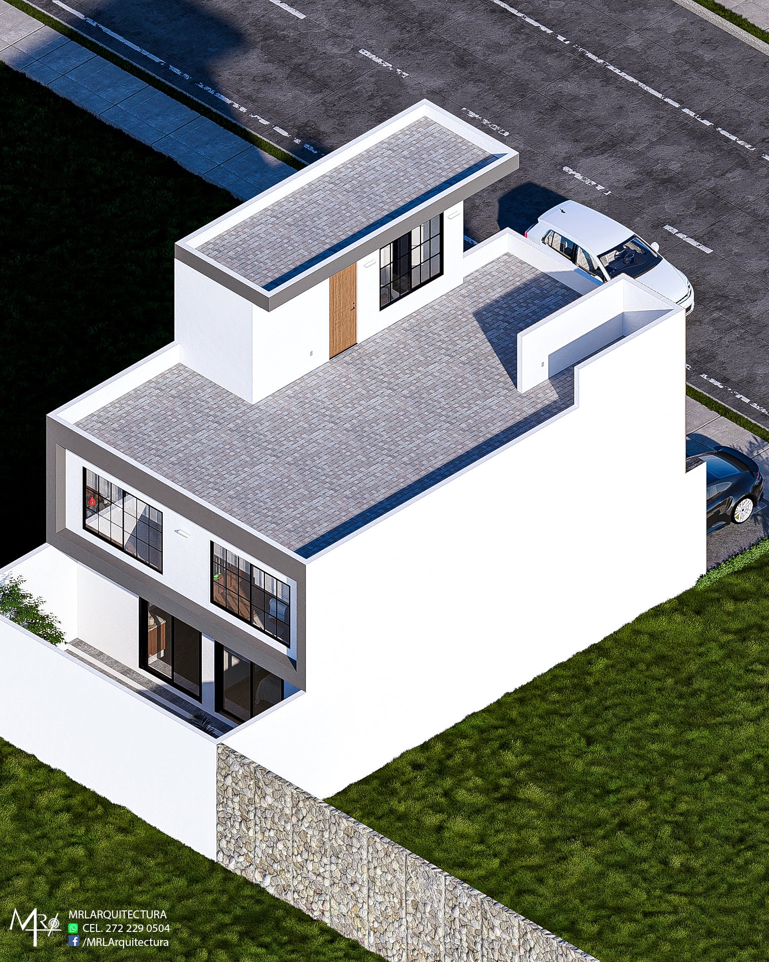 Este proyecto arquitectónico combina volúmenes audaces con un diseño contemporáneo que transmite elegancia y sofisticación. La integración de acabados en madera, ventanales amplios y marcos en tonos oscuros crea un balance perfecto entre calidez y modernidad.
